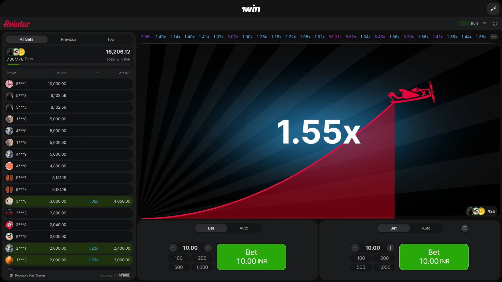 - Multiplier Growth: The plane takes off and the multiplier increases from 1x upward. Your potential win grows as the plane climbs.